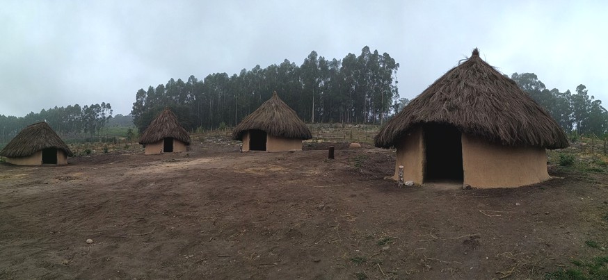 Con esta idea creáronse tres cabanas circulares cunha factura semellante á anterior, cunhas dimensións que roldan entre os 4 e 5 metros de diámetro, realizadas co entrelazado de varas de madeira entre postes de castiñeiro, reenchidas con palla e barro e cubertas de pallabarro. Cunha estrutura de teito realizada tamén con castiñeiro a modo de armazón e cuberta con xestas formando un cono sobre a construción.