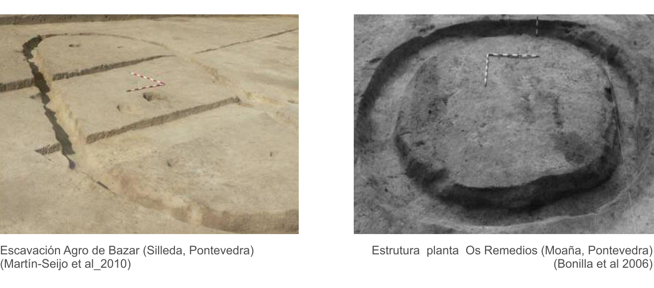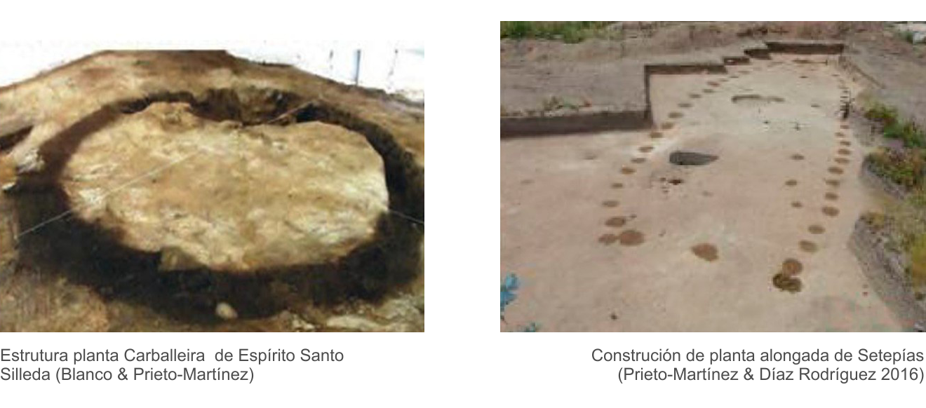 Os restos arqueolóxicos permiten rexistrar datos como as formas en planta, o tipo de cimentación (buratos de poste, fosas), a existencia de pavimentos e fogares no interior das construcións, a localización das portas, etc. E no que respecta aos materiais utilizados recorremos a disciplinas especializadas como a antracoloxía ou a carpoloxía que permiten identificar os restos de madeiras, ou plantas, carbonizadas en contextos arqueolóxicos.