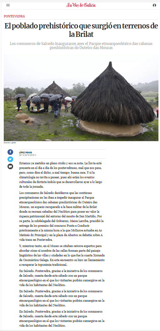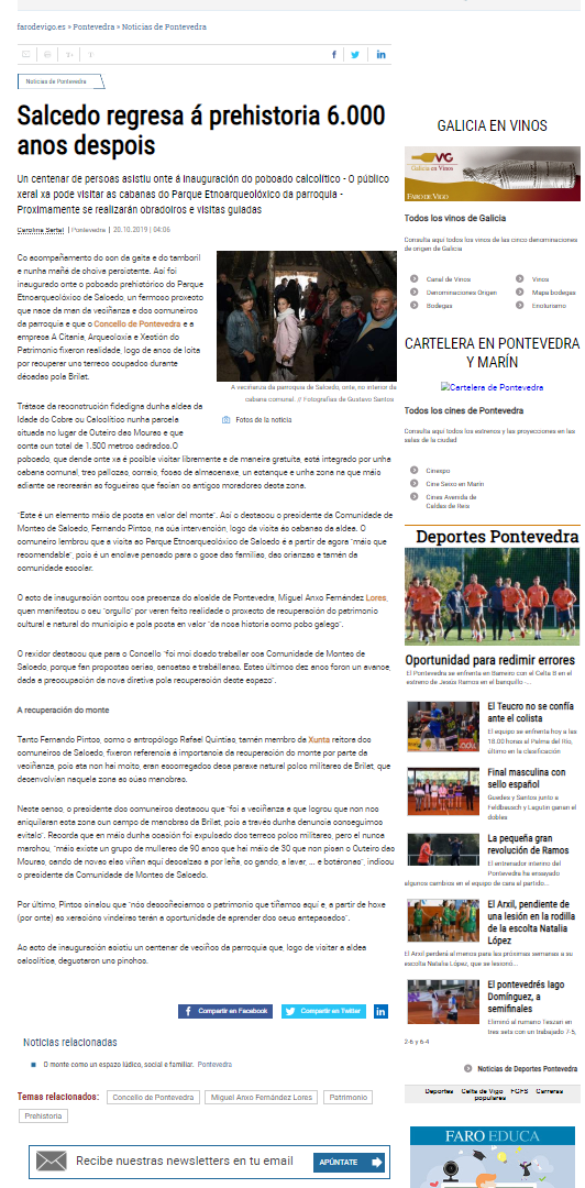 Faro de Vigo ——————————————————————————————————————- SOBRE A PARTICIPACIÓN NAS “I XORNADAS SOBRE PATRIMONIO” FALANDO DE MÚSICA NA “I XEIRA DO PATRIMONIO RURAL” Diario de Pontevedra ——————————————————————————————————————- SOBRE A I XEIRA DO PATRIMONIO RURAL DE SALCEDO Diario de Pontevedra Faro de Vigo O DOCUMENTAL “COMUNEIROS. CEN ANOS DE VIDA E LOITA POLO MONTE DE SAN MARTIÑO” OGRANDE ACOLLIDA DO DOCUMENTAL “COMUNEIROS”Posted on 6 Novembro 2011 by asombradebouzapanda