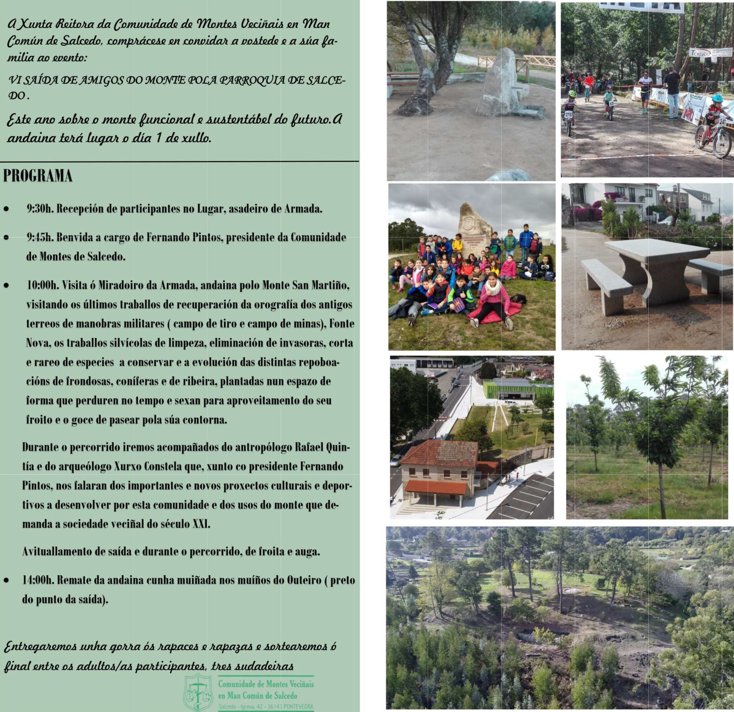 O día 1 de xullo de 2018 a Comunidade convoca a todos veciños da Parroquia e demais cidadáns a VI SAÍDA DE AMIGOS DO MONTE NA PARROQUIA DE SALCEDO.